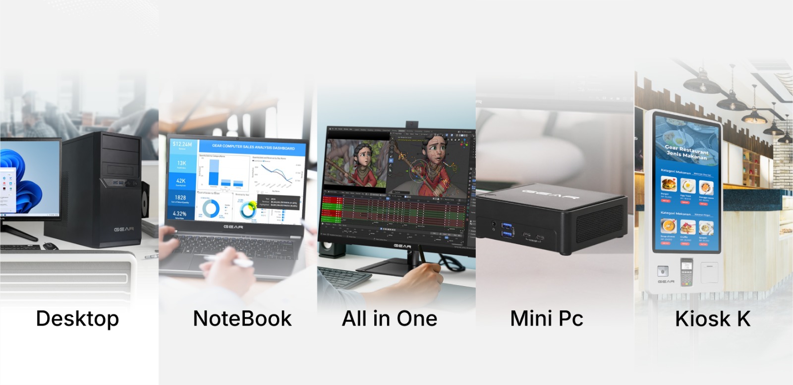 GEAR computer is one of the local PC products, established in Indonesia since August 2003. GEAR Computer is concerned with TCO (Total Cost of Ownership), and with making personal computers and servers compatible to companies needs.